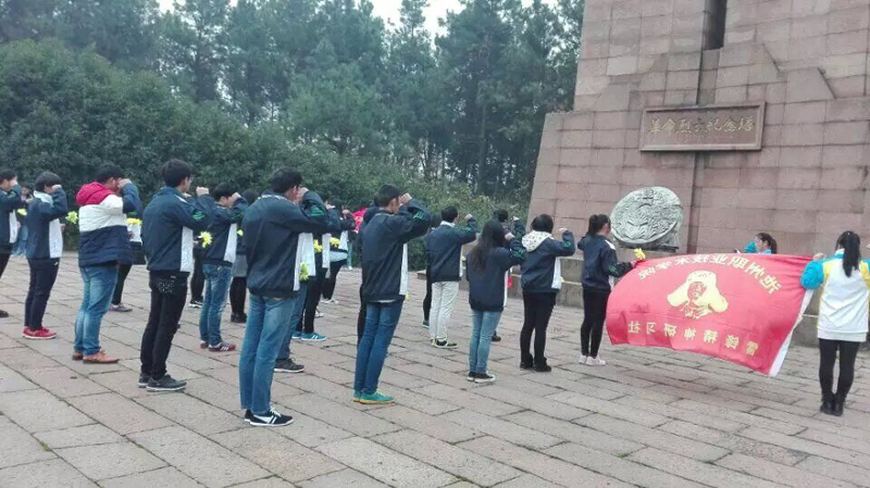 冬日的烈士陵园松柏苍翠,幽静典雅。上午9时30分,纪念活动开始。学生代表敬献花圈于纪念碑前,随后,全体学生高举右手,面对国旗宣誓,全场肃立,默哀一分钟悼念南京大屠杀遇难同胞。参加纪念活动的全体人员怀着对三十多万惨遭屠杀的无辜死难者的哀悼之情,瞻仰了烈士纪念碑和烈士墓。雷锋研习社会长周亮亮还在发言中说,作为当代大学生,我们应深刻思考设立“国家公祭日”的意义,这绝不是为了行使一种仪式、做出一种姿态,而是为了唤回我们不该逝去的记忆,找到继续前进的动力。我们应肩负使命,更好地建设我们的校风、学风,将爱国主义教育从一般性的号召变成实实在在的行动。