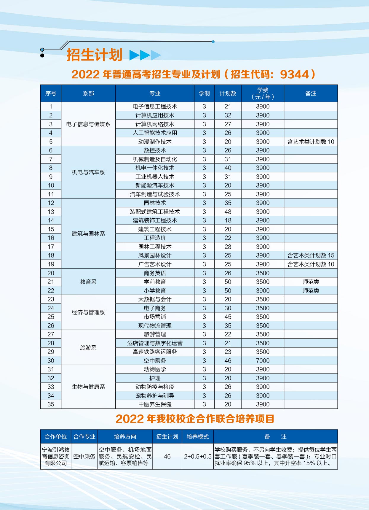 池州职业技术学院2022年普通高考招生计划