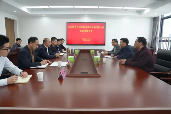 盛国星表示,池州职业技术学院按照市委市政府提出的“推动池州职业技术学院提升办学层次,打造成为省内领先的技能型‘双高’职业院校”决策部署,增强“慢进是退、不进更是退”的紧迫感,加快人才队伍建设,加快合作办学步伐,加快产教融合和科技成果转化,促进事业高质量发展。希望通过此次考察交流,进一步学习借鉴在办学治校、“双高”建设、校企合作、人才培养、科研与社会服务、创新创业以及国际交流合作等方面宝贵的经验,不断提升办学水平和人才培养质量。