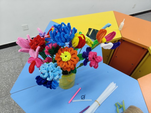 参与者们充分发挥自己的想象力和创造力,用扭扭棒制作出了各种精美的作品。有的同学制作了栩栩如生的花朵,有的则创作了可爱的动物形象,还有的同学尝试将扭扭棒与插花艺术相结合,制作出了别具一格的花艺作品。每一件作品都充满了创意和美感,展现了同学们的才华和巧思。