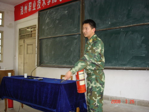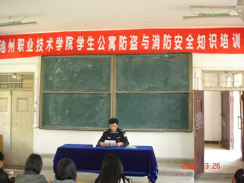 参训人员主要有各系部分管学生工作的同志、学院护校队成员和各学生公寓楼长、寝室长等二百九十多人。此次培训工作由学工部牵头,分别聘请了市公安局110指挥中心副主任刘登胜和市消防支队参谋贺涛两位同志主讲。刘登胜同志就学生安全和防盗窃、防诈骗知识进行了讲解,并且列举了社会上发生过的被公安部门侦破的大量事例,详细分析了一些学生财物被诈骗和公寓财物被盗的原因,很多同学一边听讲一边认真的做笔记。贺涛同志就防火的意义、火灾原因、防火对策和方法及火灾时如何逃生等做了详细的讲解,并且列举一些案例进行了详细分析。最后,他介绍了普通灭火器的使用方法,并在在学院操场上进行了灭火演练。