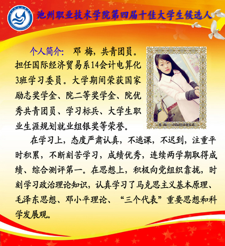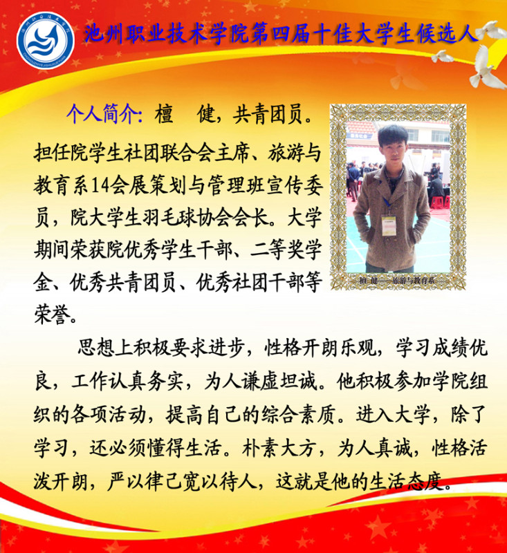 第四届校园“十佳大学生”候选人情况简介如下: