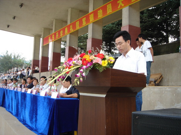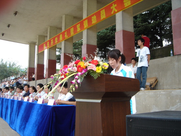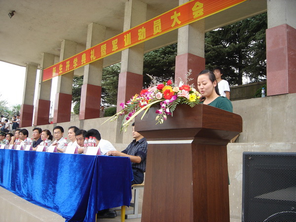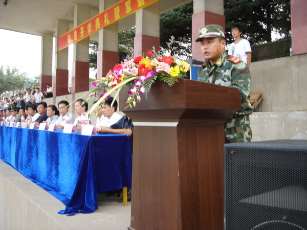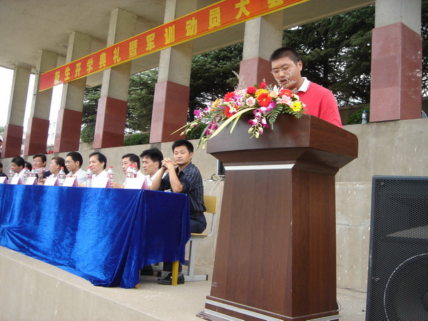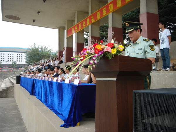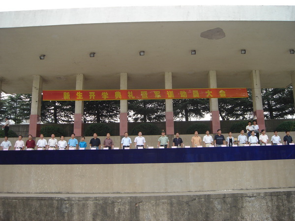 9月15日,学院在校运动场隆重举行2008级新生开学典礼暨军训动员大会,院领导章顺来、凌建成、周建生、余敦旺,武警池州支队副参谋长江波以及学院西校区、各处室、各系(部)主要负责同志出席会议,2008级全体新生及军训教官、新生各班级辅导员参加会议。院党委委员、副院长余敦旺主持大会。