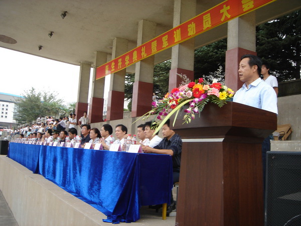 院党委副书记、纪委书记、院新生军训领导小组组长凌建成在会上做了军训动员讲话。他要求全体参训新生要提高认识,端正态度,高标准,严要求,圆满完成军训任务。要以这次军训为契机,切实加强遵纪守法观念,端正学习态度,努力熟悉学院的各项规章制度,使自己成为一名品学兼优的合格大学生;要以饱满的热情、旺盛的斗志、顽强的毅力、威武的军姿、恢宏的气势来展示池州职业技术学院人的勃勃生机和奋发向上的精神风貌,展示新一代大学生的风采。