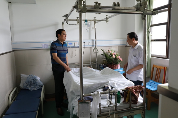6月5日,院党委副书记戴申付一行赴安庆石化医院住院部看望慰问离休干部刘树茂,为其送去组织的关怀和问候。