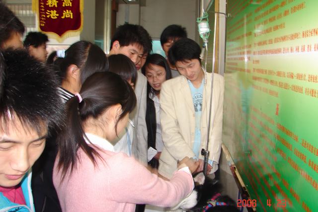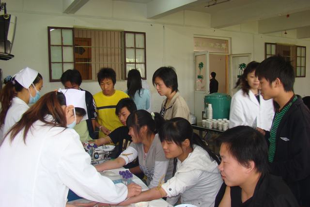 纪实五:为了教育学生关爱他人,将自己的血液无私奉献给社会公益事业,西校区主动与池州血站联系,组织了无偿献血活动。4月26日上午,池州血站来我校区普及献血、输血常识并现场采血。在团委、学生会的精心组织下,同学们踊跃报名,参加献血的师生共有66名,占在校学生数的35%。