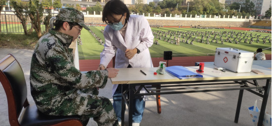 军训是大学生接受国防教育的基本形式,通过严格的军事训练提高大学生的政治觉悟,激发爱国热情,增强国防观念和组织纪律,养成良好的学风和生活作风,池州职业技术学院2023级学生军训在11月1日正式拉开帷幕。校医室一如既往地承担起军训期间的医疗保障任务。