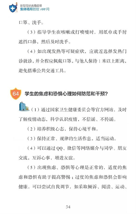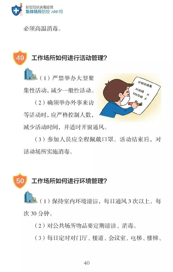 新型冠状病毒疫情集体场所防控100问(场所防控篇)